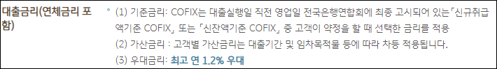 기준금리는 신청시기의 시장금리에 따라 달라질 수 있으며, 가산금리와 우대금리는 신청인의 대출조건에 따라 달라지게 됩니다.