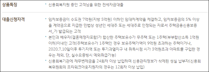 신용회복지원 중인 분이 신청할 수 있는 전세자금대출 중 조건이 가장 좋은 대출 상품입니다.