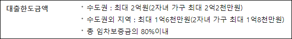 - 수도권 : 최대 2억원, 2자녀 이상 다자녀 가구는 최대 2억 2천만원