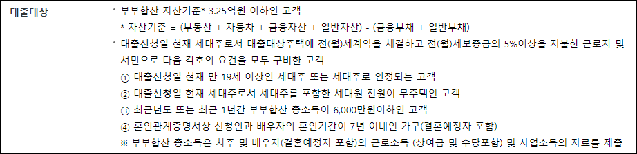 - 대출신청일 현재 만 19세 이상인 세대주 또는 세대주로 인정되는 분
