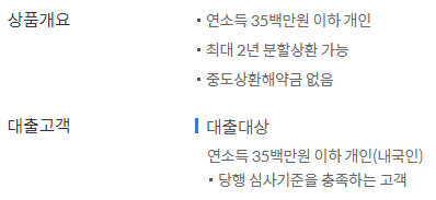 대출 실행 이후 중간에 상환하여도 중도상환 해약금이 없다는 것이 특징입니다.