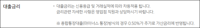 종합통장, 즉 마이너스 통장대출의 경우 최초 1년으로 약정되며, 만기전 연장신청을 통해 1년단위로 연장하여 이용할 수 있으니 참고바랍니다.