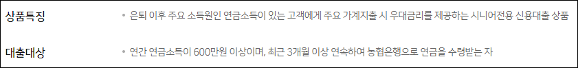농협은행 연금수급자 신용대출 이용조건 총정리