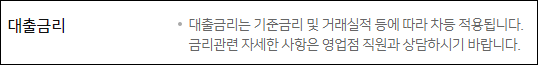 기준금리는 신청시기의 시장금리에 따라 달라질 수 있으며, 가산금리와 우대금리는 신청인의 대출조건 등에 따라 달라지게 됩니다.
