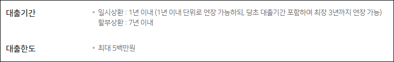 할부상환의 경우 최대 7년 이내로 대출기간을 약정할 수 있지만 이자만 납입하는 거치기간은 별도로 운용할 수 없으니 참고하시길 바랍니다.