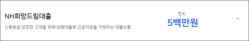 농협은행 희망드림대출은 신용등급은 양호하지만 현재 신용부채 과다, 저소득 등으로 제 2금융권 등에서 고금리 대출을 이용하는 분의 긴급자금을 지원하는 대출 상품입니다.