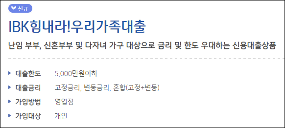 기업은행 신혼부부 신용대출 이용조건 총정리
