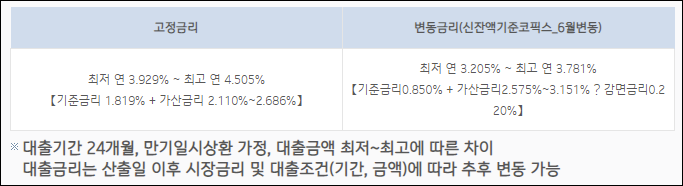 연간 3.929%에서 4.505%의 금리가 적용될 수 있지만 신청시기 및 대출조건 등에 따라 실제 금리는 달라질 수 있으니 참고만 하시길 바랍니다.