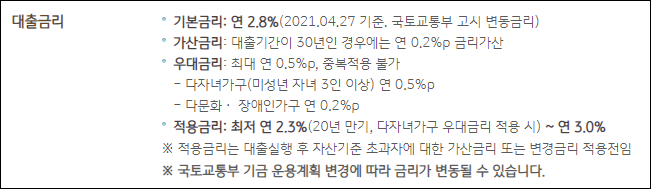 연간 2.8%의 금리가 적용될 수 있지만 신청시기 및 대출조건 등에 따라 실제 금리는 달라질 수 있으니 참고만 하시길 바랍니다.