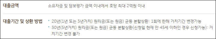 다만 신청일 현재 만 45세 이상인 경우에는 대출기간을 30년으로 설정할 수 없고 20년으로만 설정할 수 있으니 참고하시길 바랍니다.