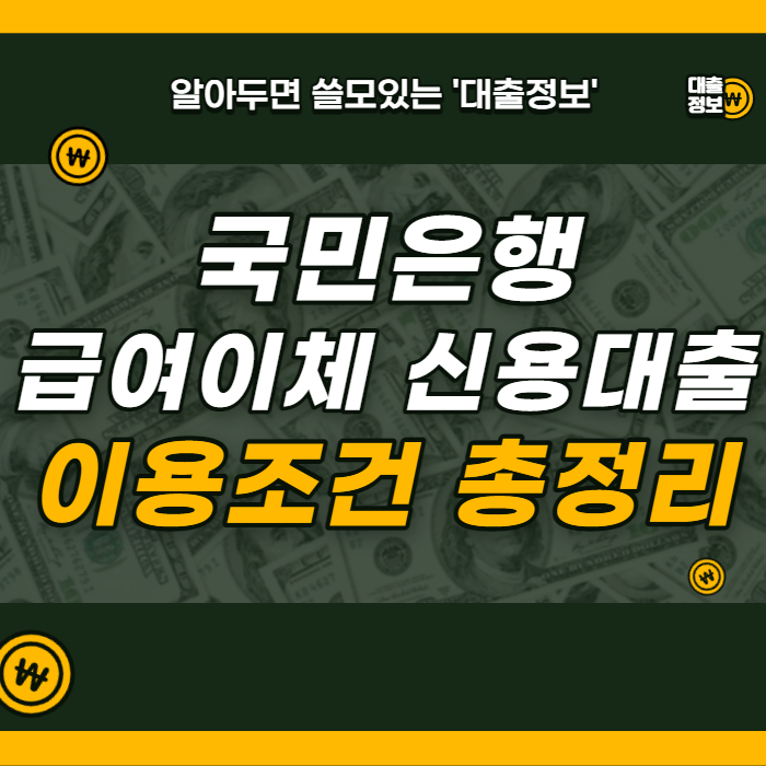 오늘은 국민은행 급여이체 신용대출에 대해 설명해드리도록 하겠습니다.