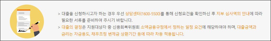 다만 어떤 방식으로 대출을 신청하더라도 먼저 신용회복위원회 상담센터 1600-5500으로 연락하여 신청요건 및 가능여부를 확인하고 대출신청을 진행하시길 바랍니다.