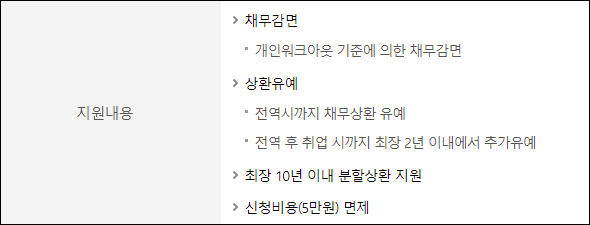 신용회복위원회 군복무자 채무조정 지원내용