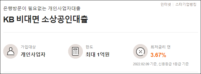 국민은행 소상공인 비대면대출 조건안내