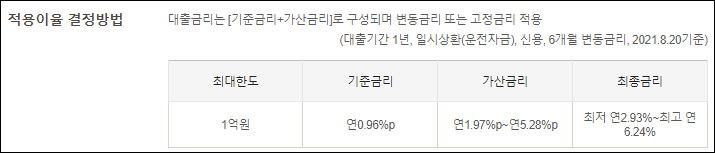연간 2.93%의 금리가 적용될 수 있지만 신청시기 및 대출조건 등에 따라 실제 금리는 달라질 수 있으니 참고만 하시길 바랍니다.