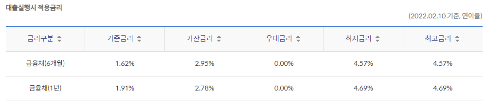 기준금리는 신청시기의 시장금리에 따라 달라질 수 있으며, 가산금리와 우대금리는 신청인의 대출조건 등에 따라 달라지게 됩니다.