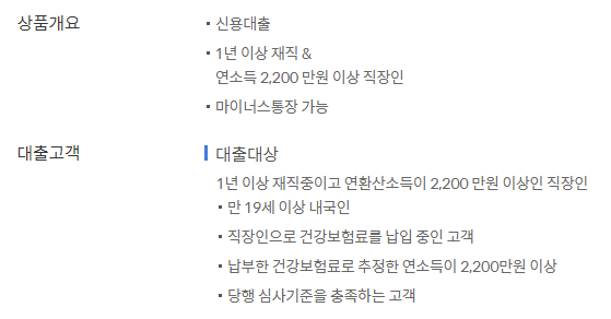 현재 직장에 1년이상 재직중이면서 연소득이 2200만원 이상인 직장인이 아래의 요건을 충족하면 신청할 수 있습니다.