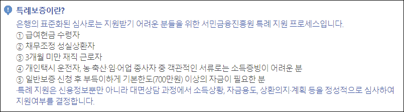 특례보증을 받고자 한다면 서민금융 통합지원센터에 방문해야합니다.
