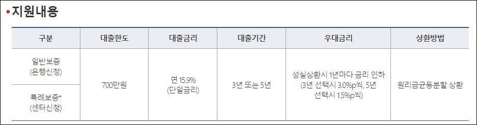 - 특례보증 : 최대 1400만원