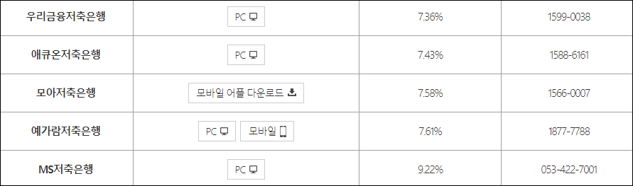 제공하는 금리를 확인해보고 원하는 저축은행 홈페이지에 접속하여 대출가능여부와 한도를 확인해보시길 바랍니다.