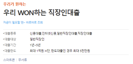 우리은행 비대면 대출은 1년 365일 자금이 필요할 때 언제나 대출 가능여부를 조회할 수 있고 대출 실행까지 가능한 비대면 대출 상품입니다.