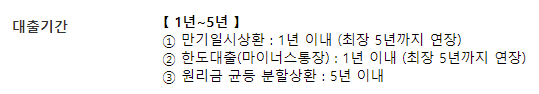 - 원리금균등분할상환 : 5년 이내에서 신청인이 대출기간 선택