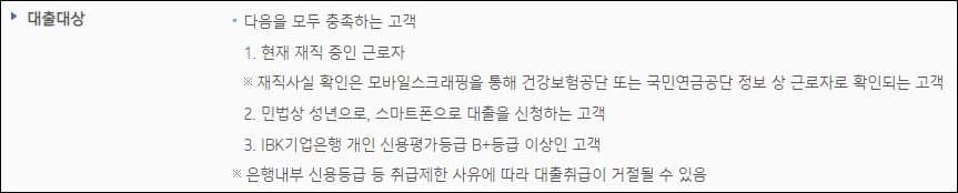 기업은행 비대면대출 신청자격