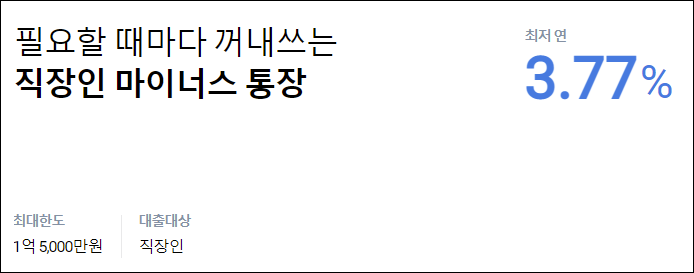 한도를 미리 받아두기 때문에 필요할 때마다 사용할 수 있다는 장점이 있어 직장인이 비상금 용도로 많이 사용하는 대출상품입니다.