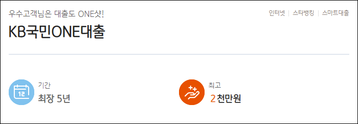 국민 ONE대출은 우수거래 요건을 충족하면 신청이 가능하니 스타뱅킹 앱을 통해 대출가능여부를 확인해보시길 바랍니다.