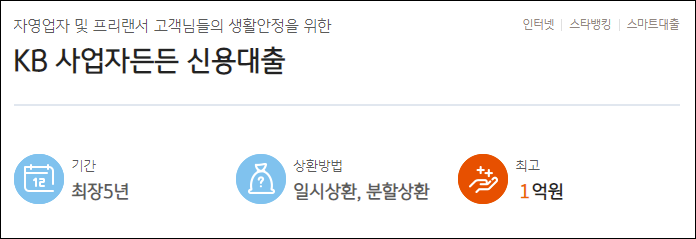 국민은행 사업자든든 신용대출은 자영업자 및 소상공인, 개인사업자의 가계 생활안정자금을 지원하는 모바일 신용대출 상품입니다.