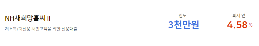 농협은행 새희망홀씨는 저소득 / 저신용 서민계층을 지원하기 위한 정부지원 서민대출 상품입니다.