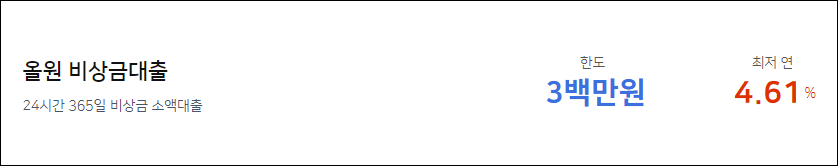 - 대출한도 : 최저 100만원 ~ 최대 3000만원
