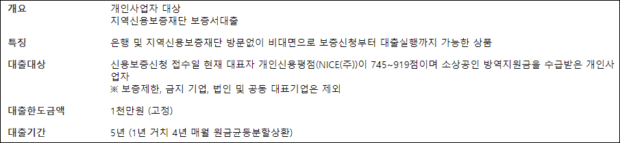 ▣소상공인 희망대출 특례보증 조건안내
