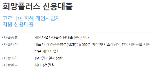 ▣소상공인 희망대출플러스 조건안내