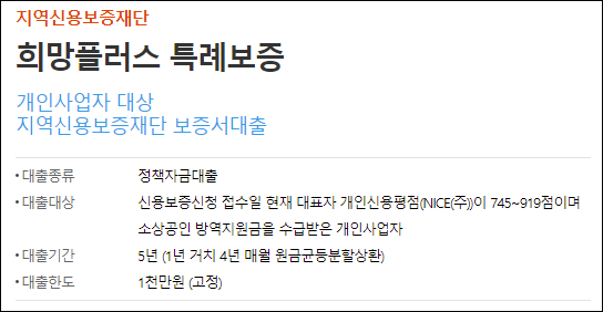 소상공인 희망대출 특례보증