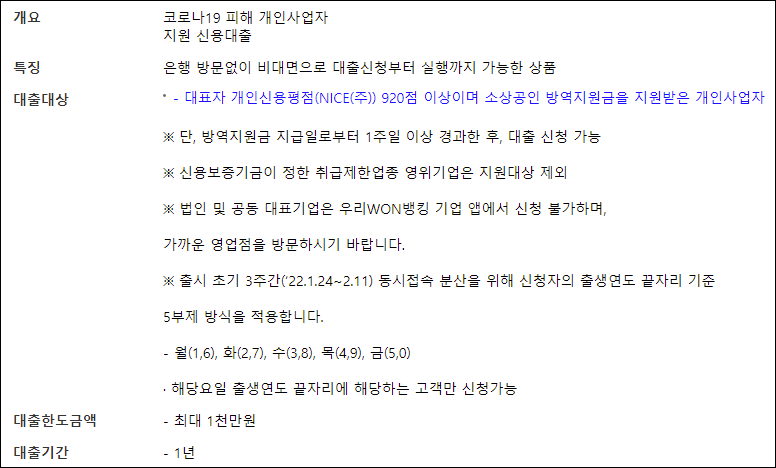 - 대출기간 : 1년