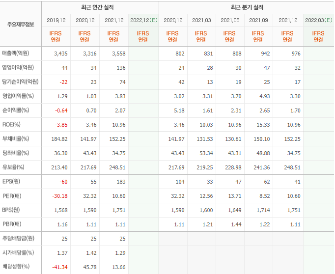 위의 이미지는 네이버 증권에서 발췌한 한일사료의 재무정보이니 참고하시길 바랍니다.