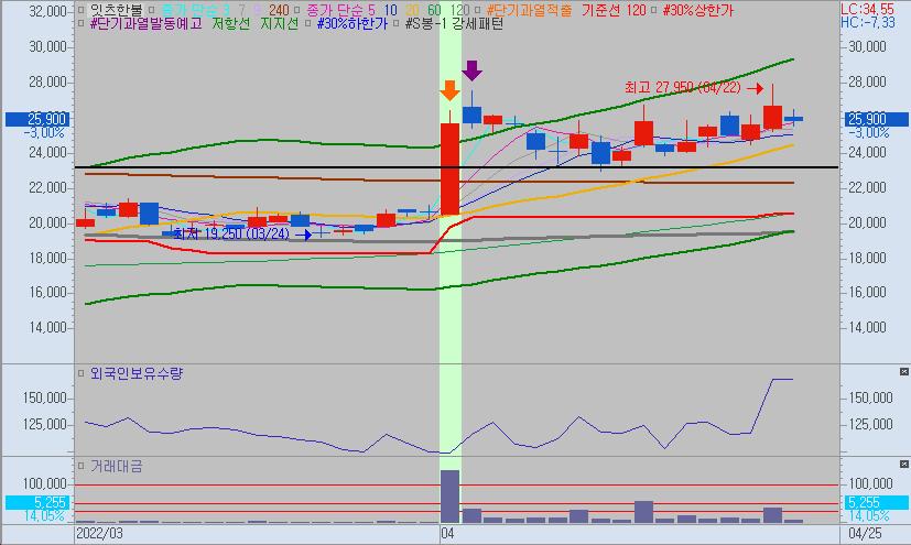 위의 차트는 잇츠한불의 일봉차트입니다.