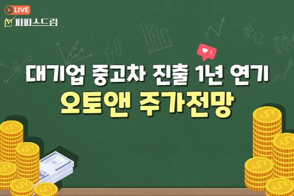 본 오토앤 주가전망 글은 파파스드림의 개인적인 의견이며, 실제 주가는 시나리오와는 다르게 움직일 수 있다는 것을 인지하시어 반드시 본인 스스로의 판단하에, 투자의 중요한 결정을 내리셔야 합니다.