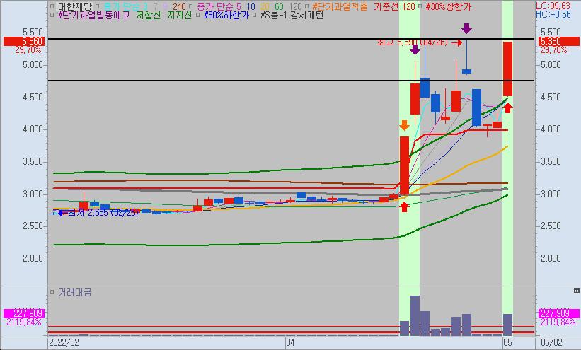 대한제당에 신규진입을 원하시는 분은 대한제당의 주가가 눌림조정을 받을 때 매수진입이 유효할 것으로 보이지만 급등주 매매에 대한 이해도가 없는 분은 매수하셔도 변동폭을 견뎌내기가 쉽지 않으니 가급적 투자를 지양하시길 바랍니다.
