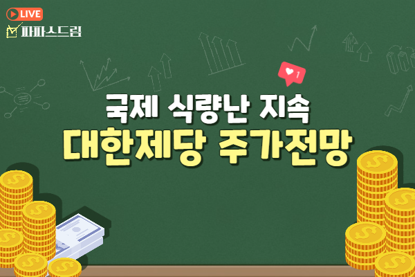 오늘은 곡물가격 급등 지속에 따른 수혜 기대감으로 상한가를 기록한 대한제당의 주가전망에 대해 알아보도록 하겠습니다.