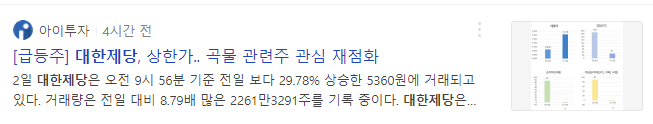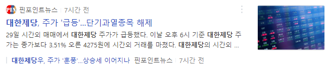 대한제당이 상승한 이유를 보다 자세히 알고 싶은 분은 위의 뉴스기사를 참고하시길 바랍니다.