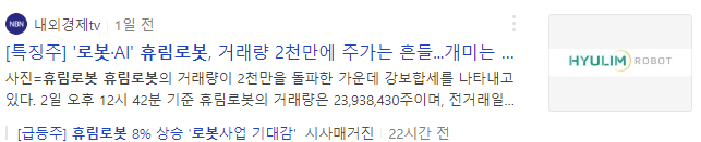 휴림로봇이 상승한 이유를 자세히 알고 싶은 분은 위의 뉴스기사를 참고하시길 바랍니다.