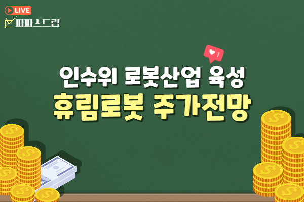 오늘은 정부주도차원의 로봇산업 육성 소식으로 급등한 휴림로봇의 주가는 앞으로 어떻게 움직일 지 알아보도록 하겠습니다.