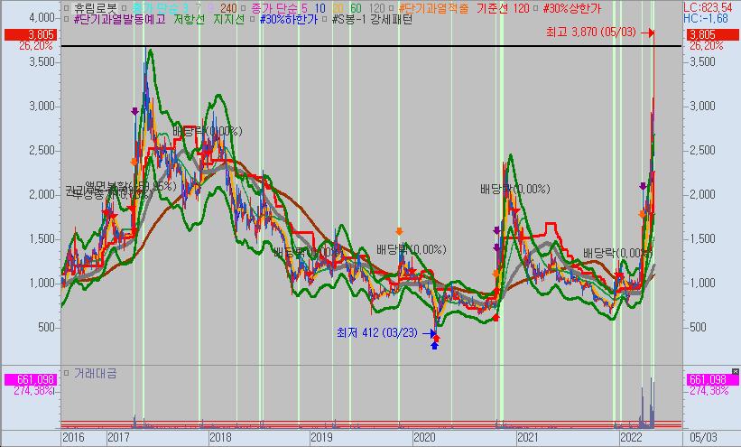 오늘 2017년의 고점을 돌파한 상황이기 때문에 추가 상승 여력이 있다고 판단되지만 동시호가 때 크게 갭상승하면 차익실현 매물이 줄줄이 출현할 수 있습니다.