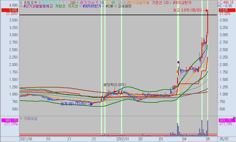 휴림로봇의 경우 짧은 기간 단기 급등한 것을 확인할 수 있는데요.