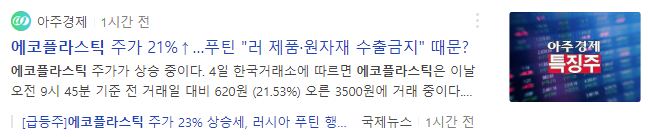 에코플라스틱이 상승한 이유를 보다 자세히 알고 싶은 분은 위의 뉴스 기사를 참고하시길 바랍니다.