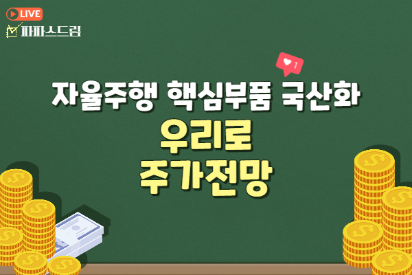자율주행 핵심부품을 국산화에 성공했다는 소식으로 우리로가 강세를 보이고 있습니다.