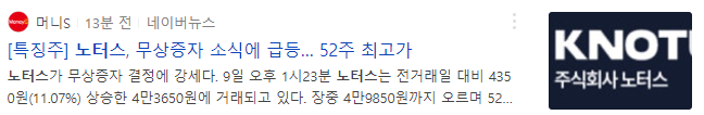 오늘 노터스가 상승한 이유를 보다 자세히 알고 싶은 분은 위의 뉴스기사를 참조하시길 바랍니다.