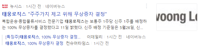 [특징주] 구주 1주당 신주 1주 무상증자 결정, 태웅로직스 상한가 - 머니픽뉴스